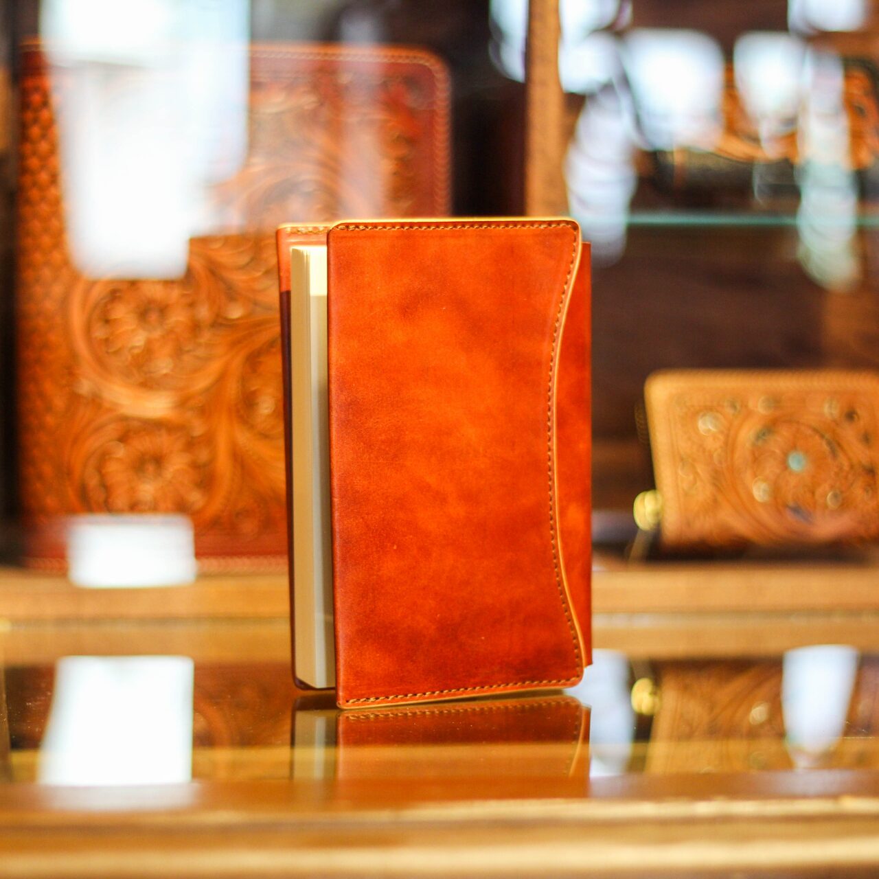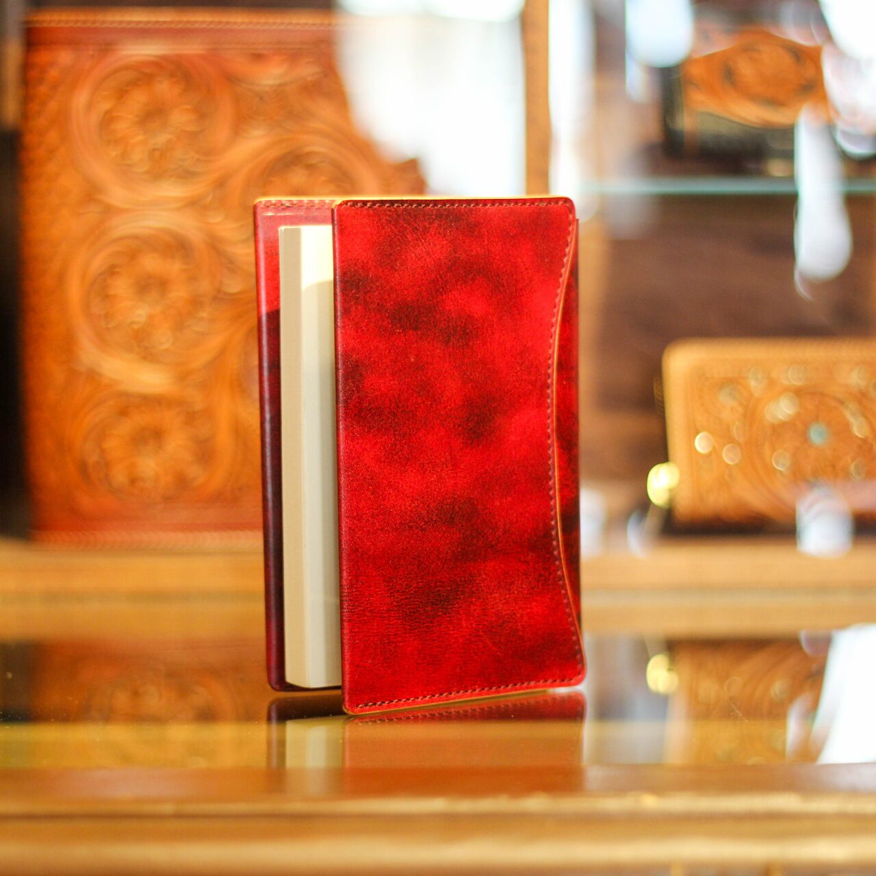 革が引っ張られないので、長編でも“本もカバーも痛まない”のが強みです。」