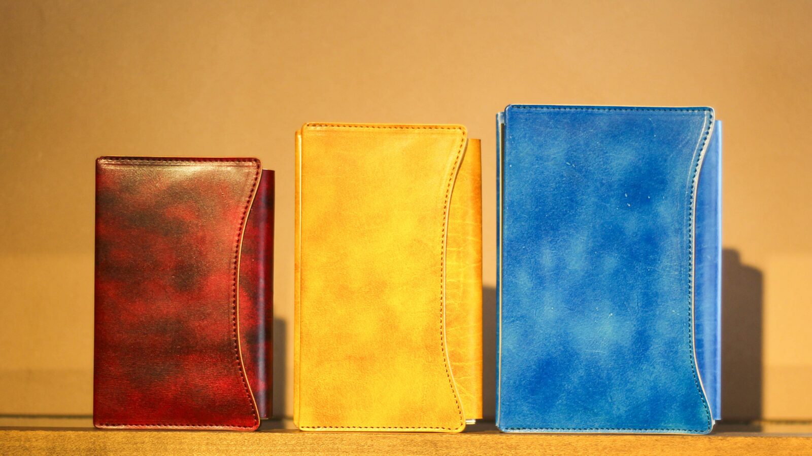 植物タンニンなめしのヌメ革で、使うほどに馴染みながら長く使える。 - 幅広い読書に対応する3サイズ展開